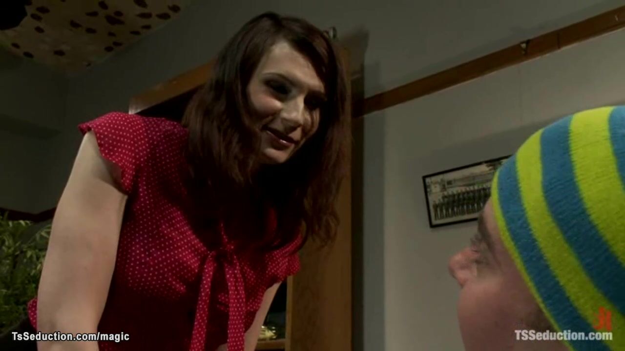 Shemale professor Dina Swift pulls cock from panties and fucks in mouth student Jack Thunda then sucks his cock and anal fucks him on desk in classroom