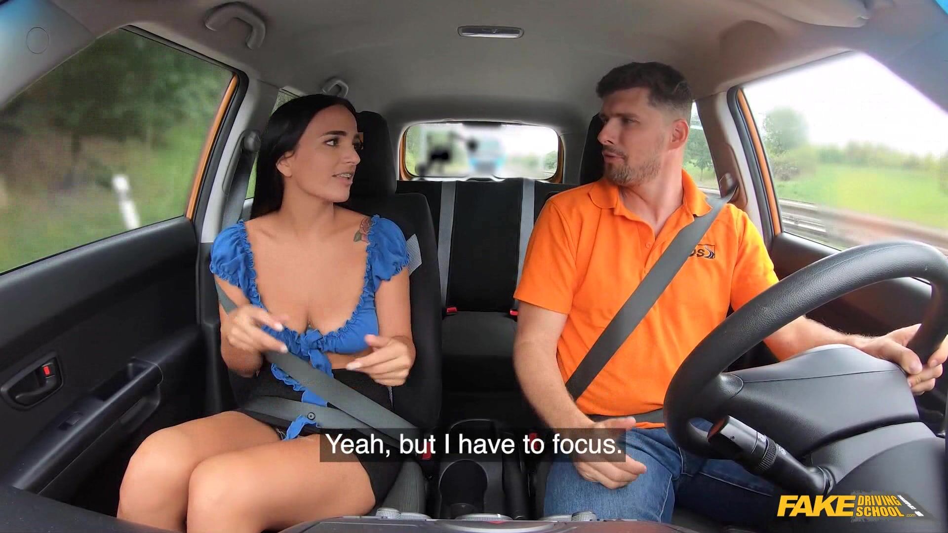 Sexy passenger feels hot inside the car