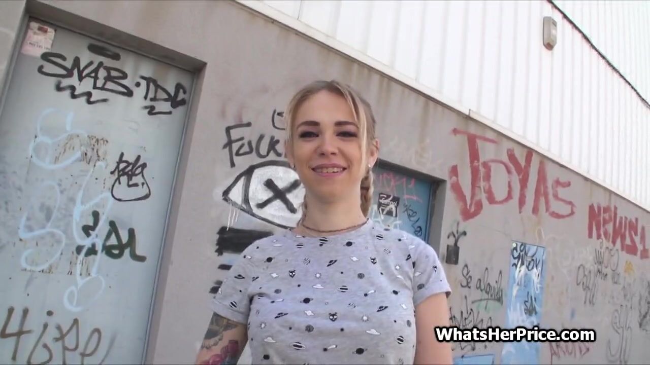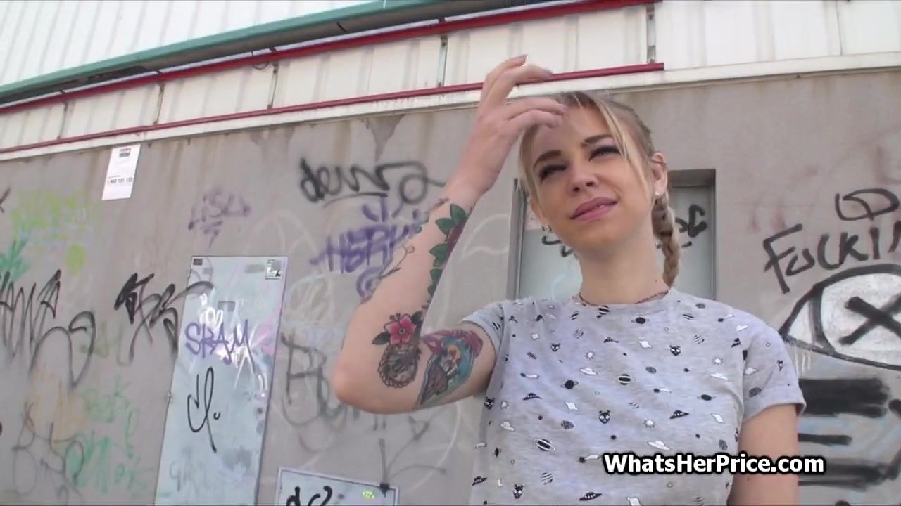Busty, hot and cute. Meet this lovely blonde babe who shows ass, tits and gets fucked on a public backstreet. She likes money after all very much!