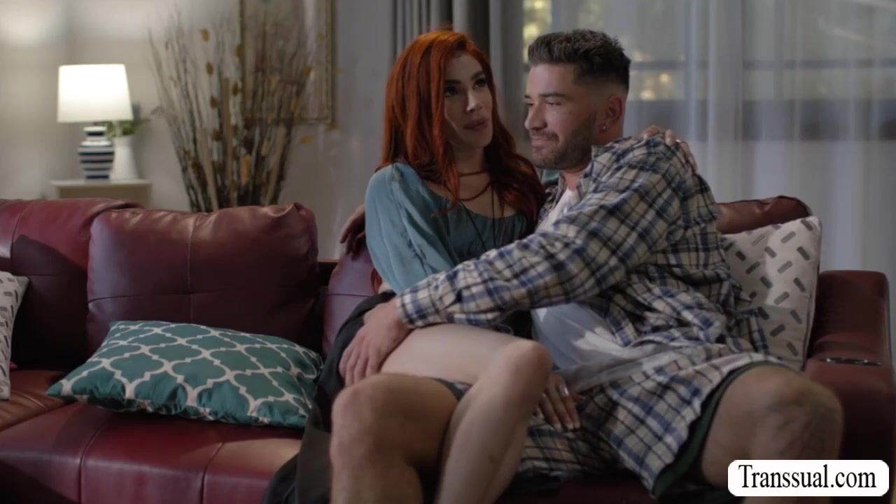 Slut trans woman brings her new boyfriend into her place and they start kissing each other on the couch.After that,she throats his hard big cock passionately.In return,the guy bareback fucks her tight wet ass so deep and hard.