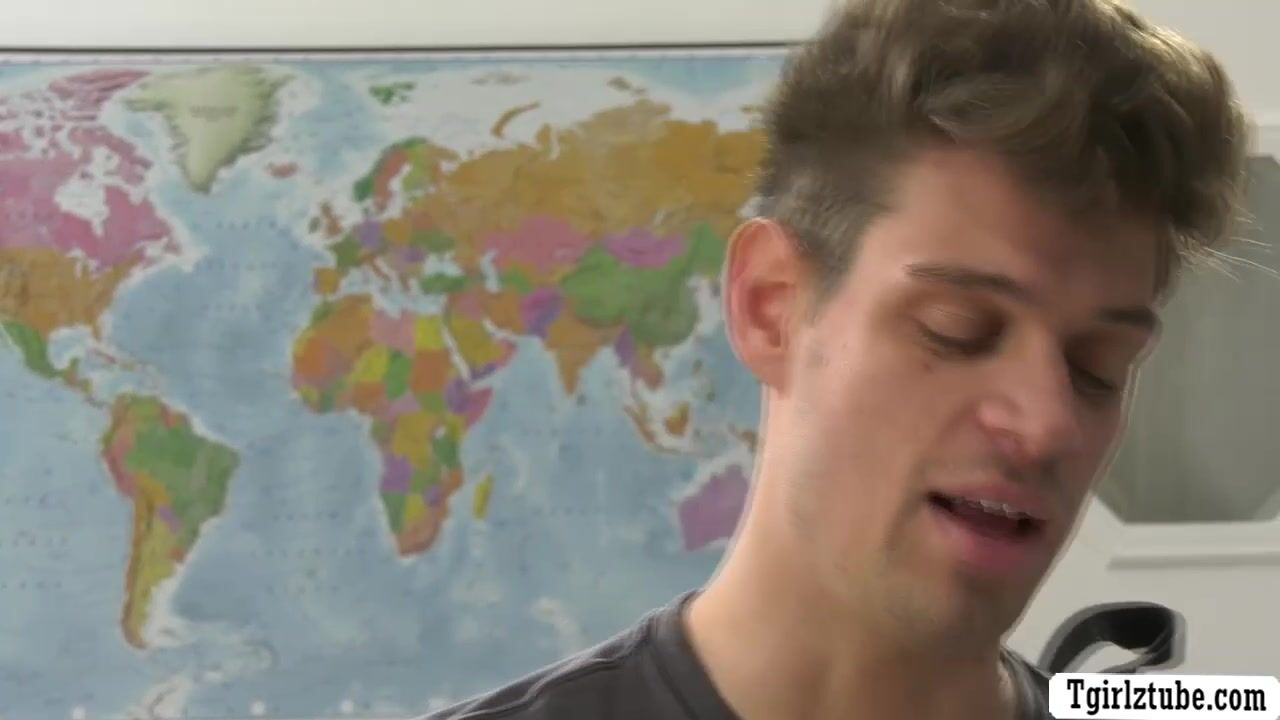 TS teacher caught her student destroying her table.Instead of getting mad,she lets him pull out his dick and she then throats his big cock passionately.In return,her student licks and barebacks her wet ass so deep and hard.