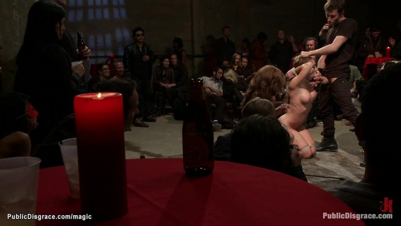 Busty slave fucked in crowded place