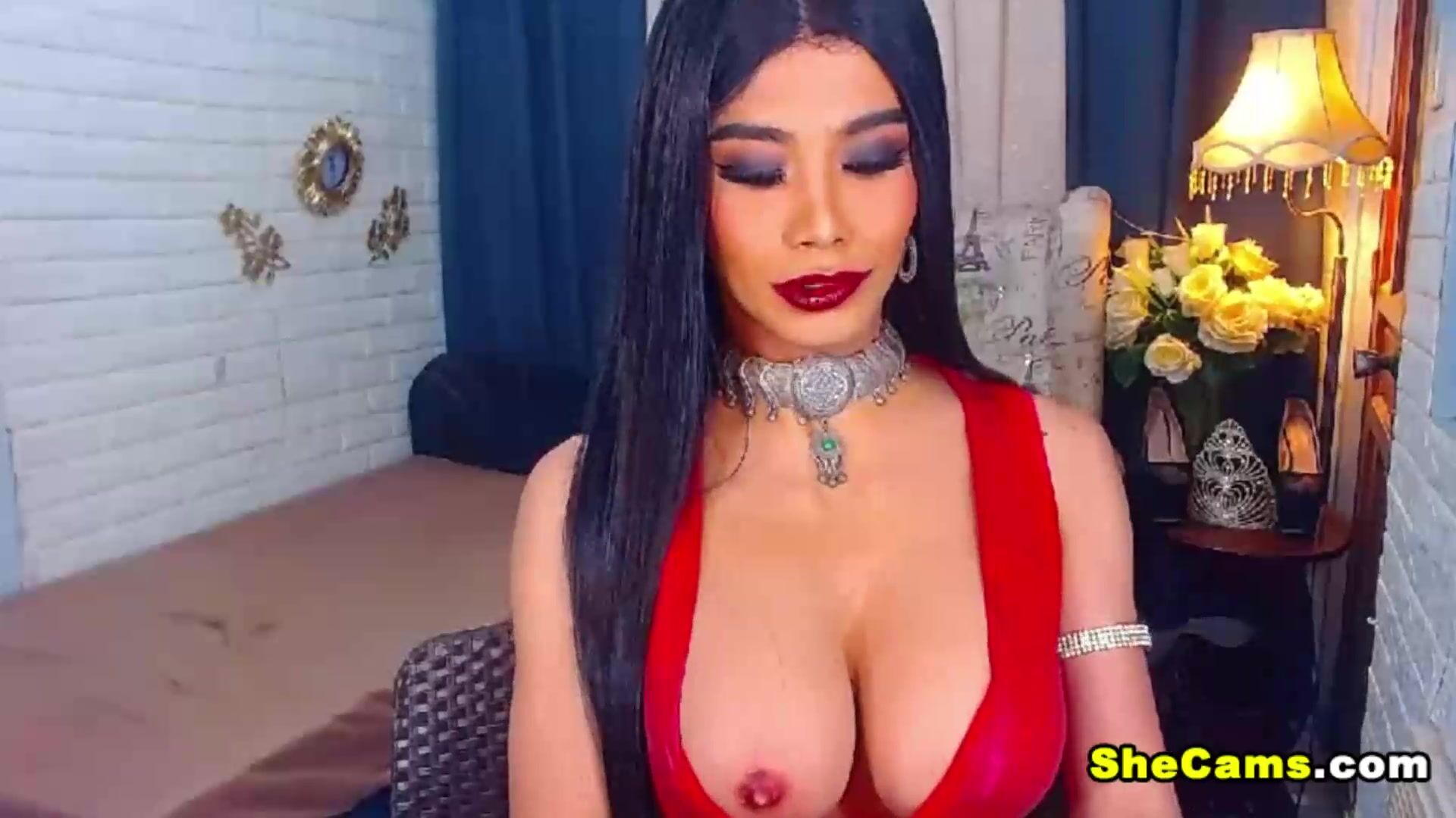 Shemale gaping asshole and big tits before starting stroking her rock-hard cock. This super-hot tranny gets ready for her solo jerk off show. She takes off her lingerie to show you her tasty tits and big hard cock. After she spread her ass cheeks she takes her hard in hand to jerk it off until she cums. Sexy and pretty shemale aims to satisfy her sexual fantasies as well as her viewer. See her bare herself to show that rockin body displaying her tight body and huge cock. She strokes her cock up and down pleasuring her sexual urges using her toy.