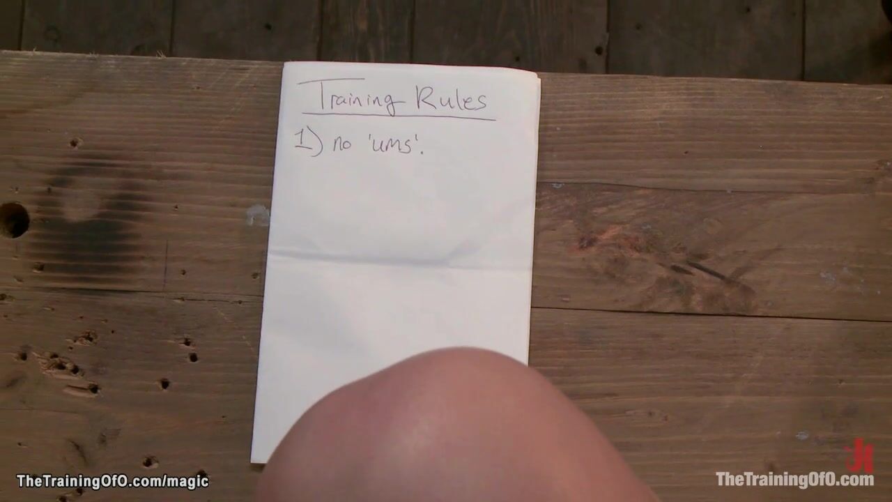 Master James Mogul clamps boobs to redhead trainee Claire Robbins and makes her squat on dildo then in suspension fucks her in throat and pussy with dick on a stick