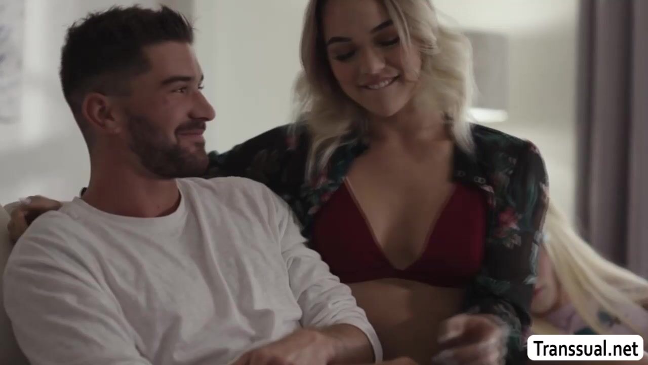 Slut shemale sucks and rides TS stepsis boyfriends big cock