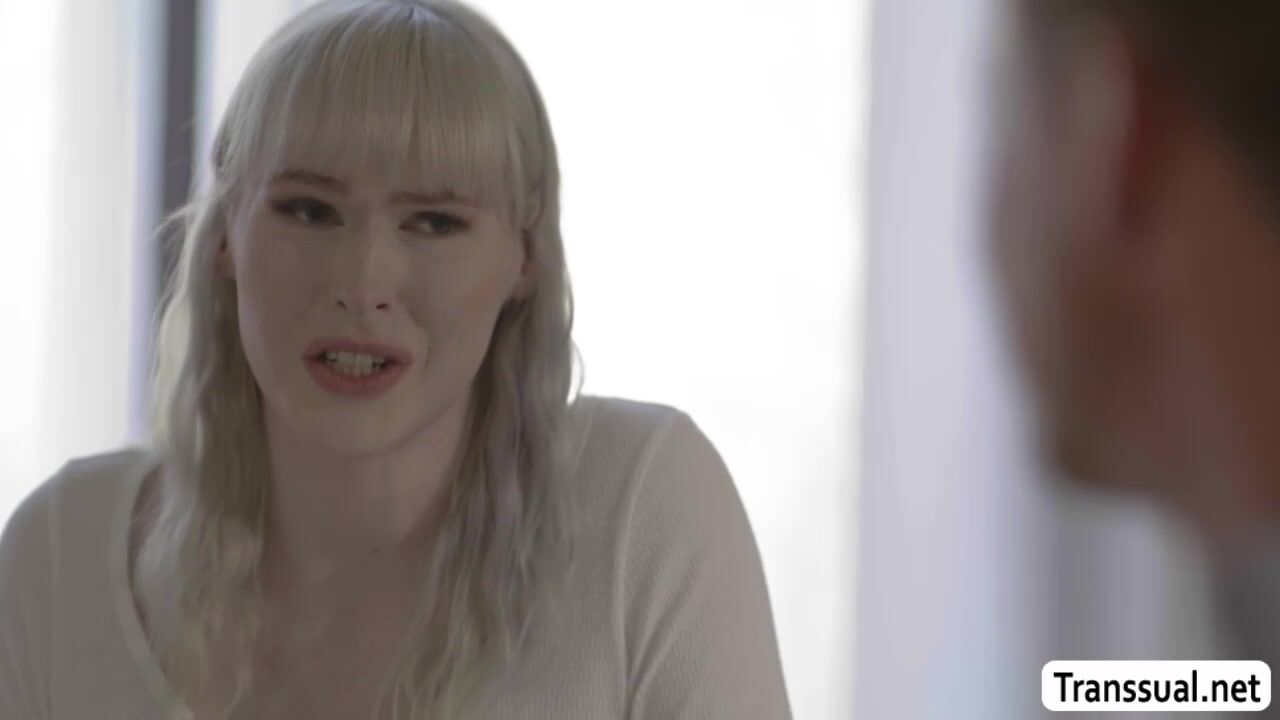 Curvy shemale tutor and her client are on the couch kissing each others lips passionately.After that,she lets him get naked and she then throats his big cock and licks his ass.Next is,she bareback fucks his tight wet ass so deep and hard.