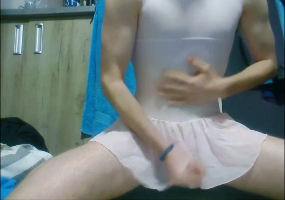 wanking and cumming in my cute new pink ballet leotard from decathlon with an attached skirt. size 14y