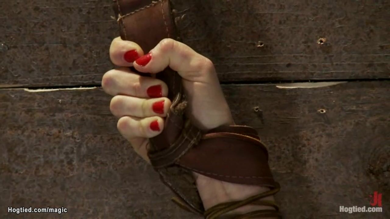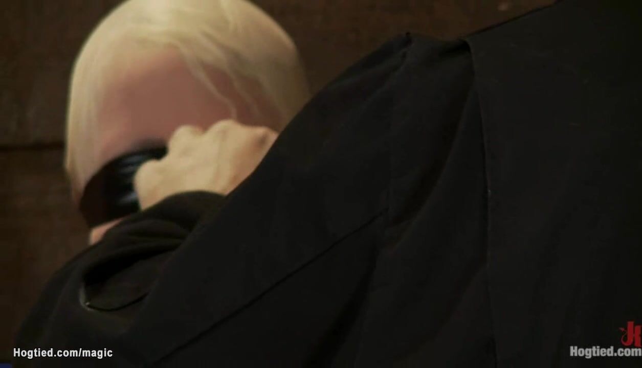 Master Matt Williams and big tits lezdom Isis Love tape eyes and mouth to blonde slave with nice pair of tits Lorelei Lee then bind her to the wooden wall