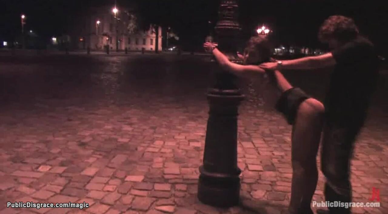 Sexy brunette Czech babe Gioia Biel is hogtied outdoors in public at night and fucked by lezdom Princess Donna Dolore then big cock fucked in various places