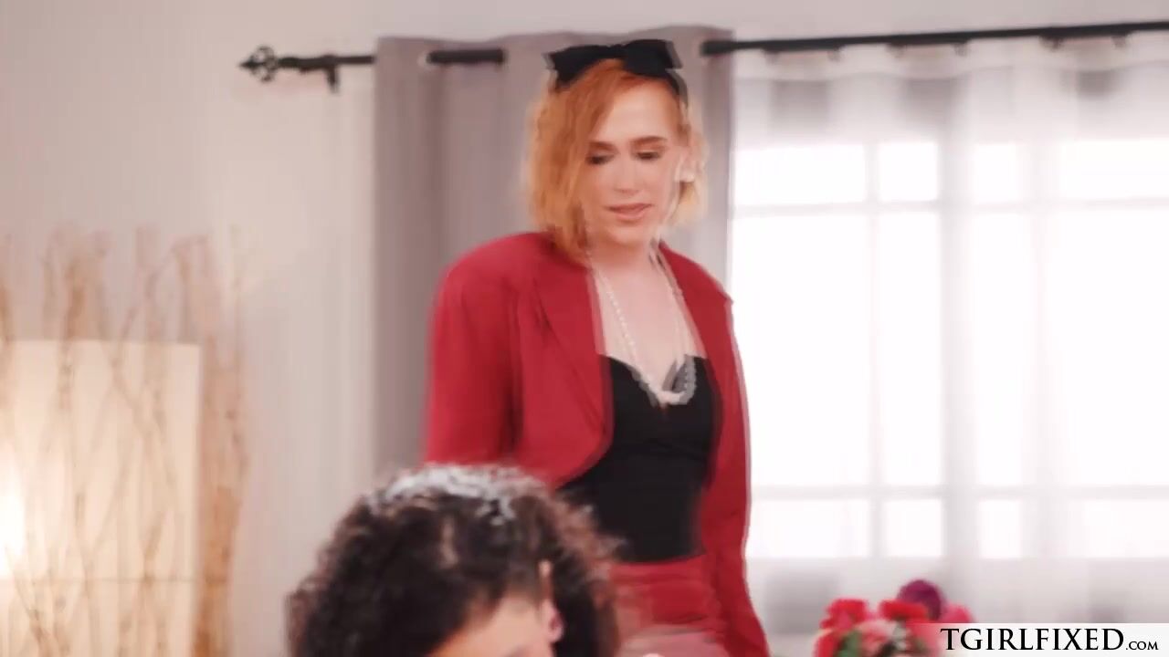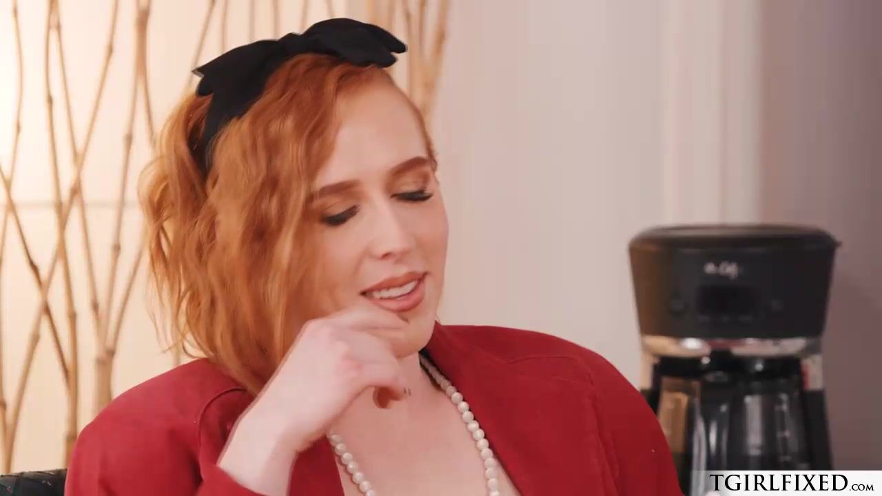 The redhead shemale babe Shiri Allwood watches brunette female Lydia stripping,they exchange kisses on the couch.The tattooed babe deepthroat blowjobs her ts cock.Lydia licks trannys foot then the trans fucks her pussy while she eats her foot.