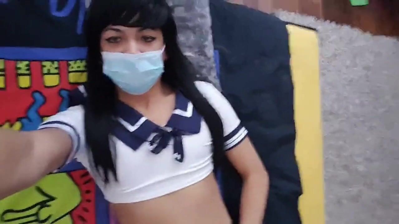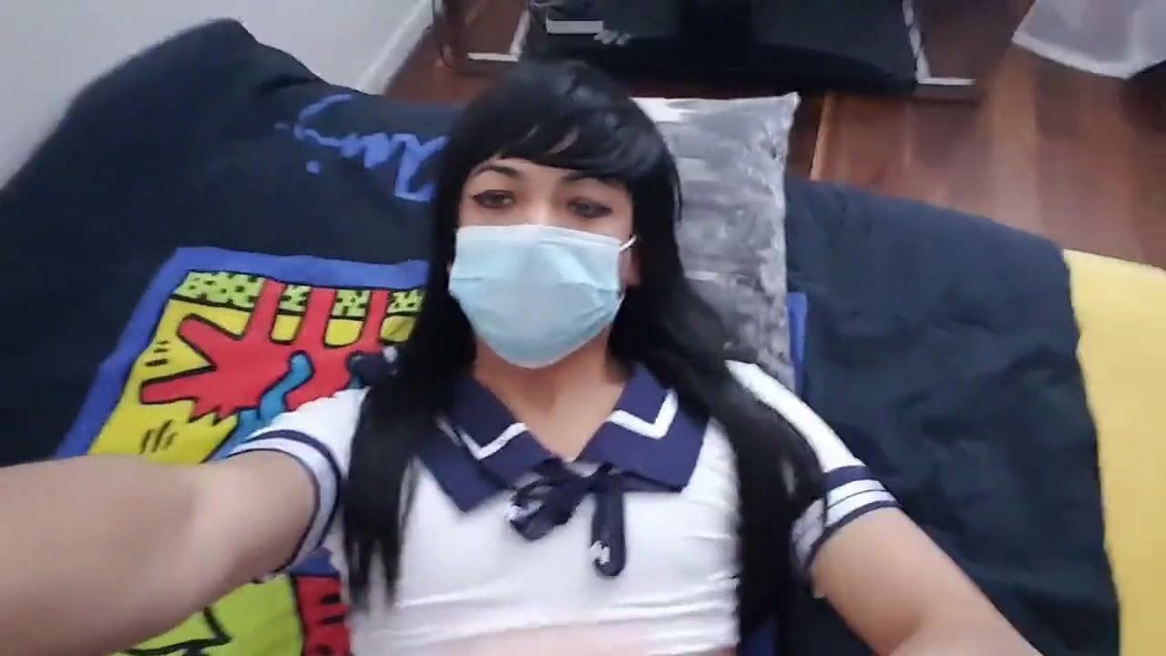 Schoolgirl crossdresser playing with herself