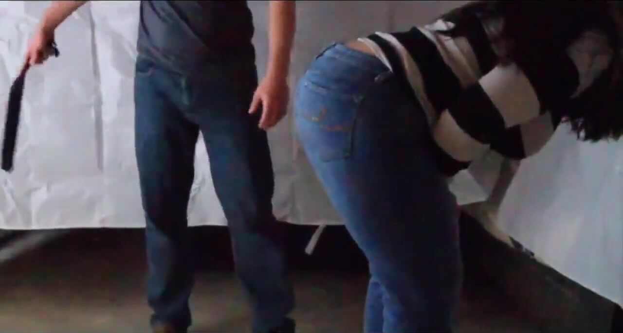 Punishing her extremely slutty ass. In her jeans and without her jeans. With a cane and with my belt. Only after that she is allowed to suck my cock.