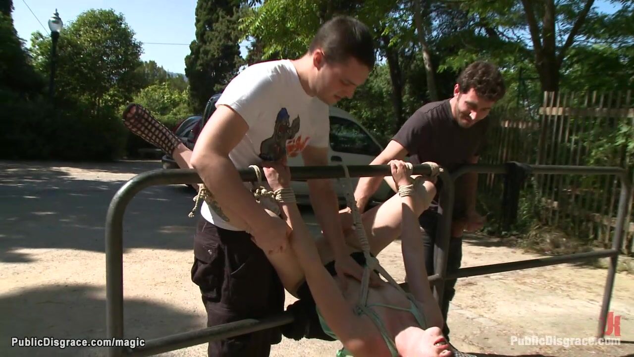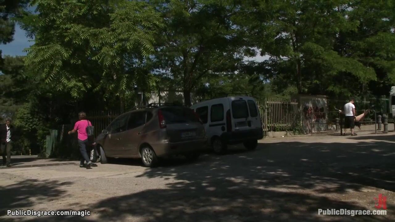 Beautiful redhead European babe Yakima Squaw gets mouth and pussy rough fucked by big cock master James Deen at various public places outdoors
