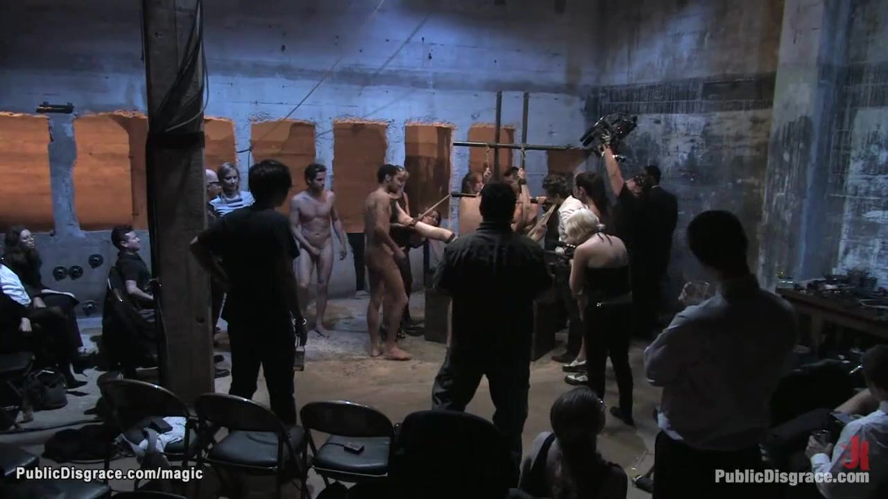 Gagged brunette slave Sarah Shevon gets tazappered by mistress Princess Donna Dolore then bound and rough big cock fucked in public crowded place