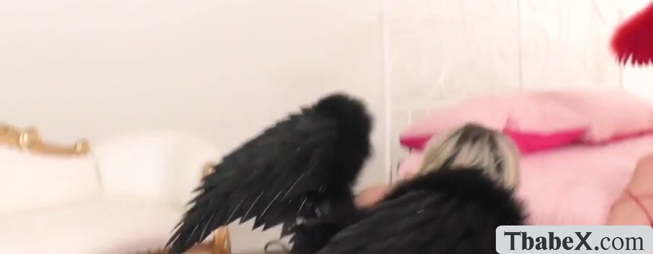 Big tits blonde shemales Aubrey Kate and Lena Moon stripteases fishnet lingerie kissing passionately while stroking their big tranny cocks. The busty tbabes take turn deepthroat blowjob big tranny cocks then rimjob then big boobs Aubrey barebacks asshole of Lena.