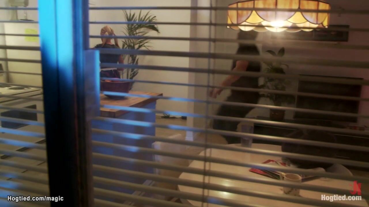 Hot big tits blonde college babe Kaylee Hilton is jumped by masked intruder Mark Davis and bound and gagged in bed and rough big dick fucked