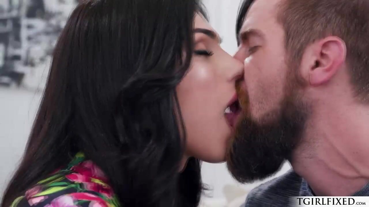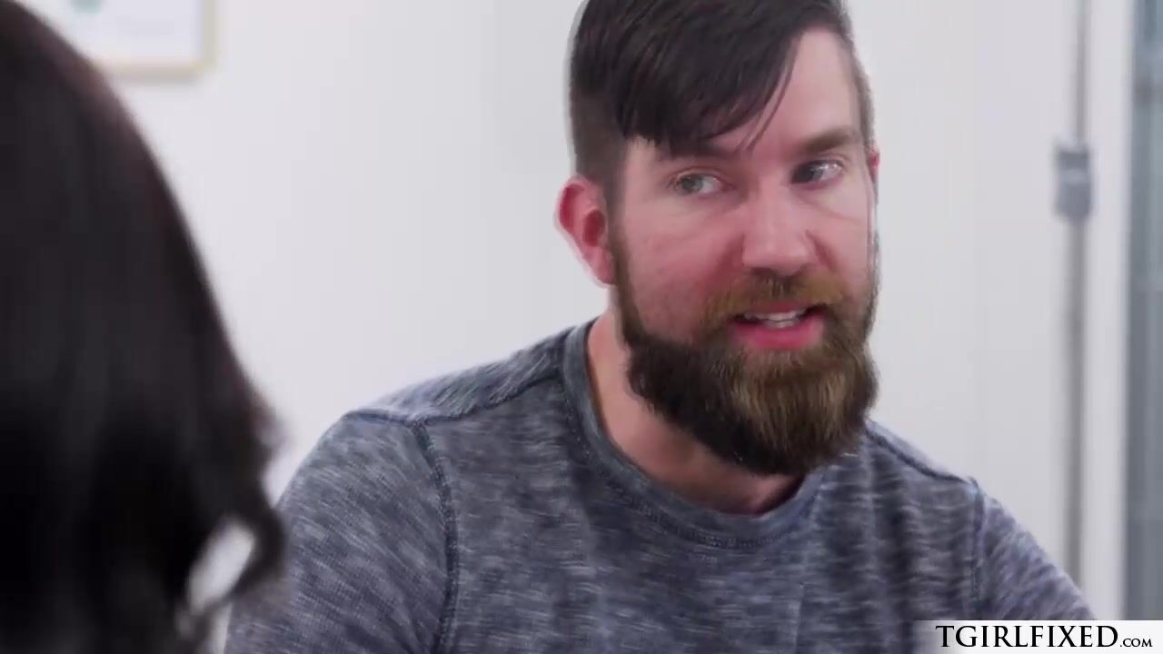 Small tits shemale Ariel Demure enters stud Chris Epics home because some stranger is following her.The tranny deepthroat blowjobs his cock.The dude rims her ass and then he bareback anal fucks her as she masturbates her ts cock on the couch.