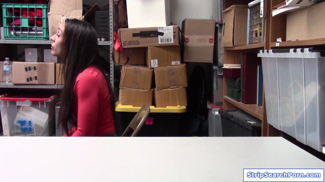 A teen shoplifter confessed then begs the officer not to call the cops.She undergoes strip search then gives full cooperation.The officer licks her small tits then makes her suck his big cock.Then the latina lies on the table while officer fucks her.