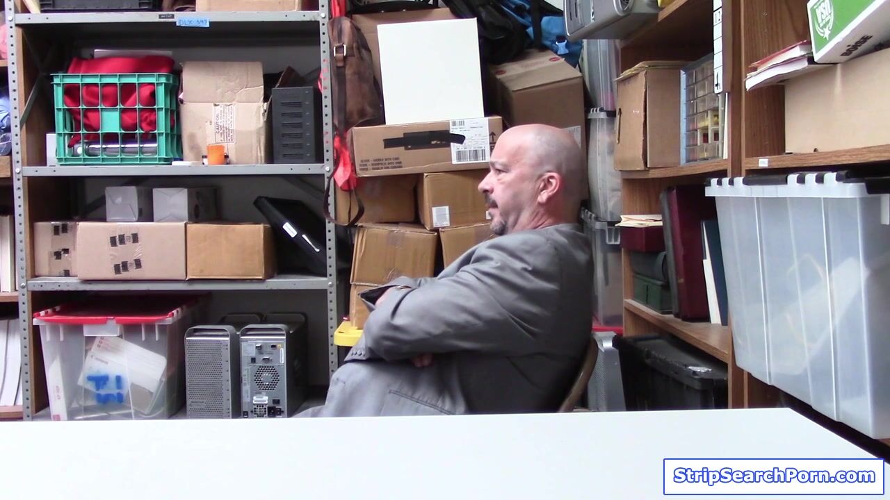 A guy and his stepdaughter get caught stealing.He negotiates with the officer to let them go in exchange of having sex with his stepdaughter.The officer strips her naked then throat fucks her.The teen spreads her legs and gets her shaved pussy fucked