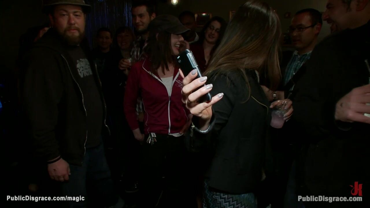 Busty blonde slave Cherry Torn gets vibed by Princess Donna Dolore then gang bang fucked by big dick Mark Davis and lesbian stranger in public bar