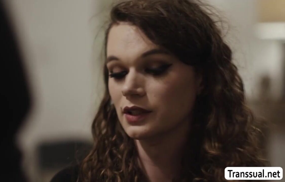 Pale shemale meets her new handsome stepdad.After that,they spend time to know each other.They start kissing each other and she throats her stepdads big cock and in return,her stepdad licks her ass first before he bareback fucks her ass.