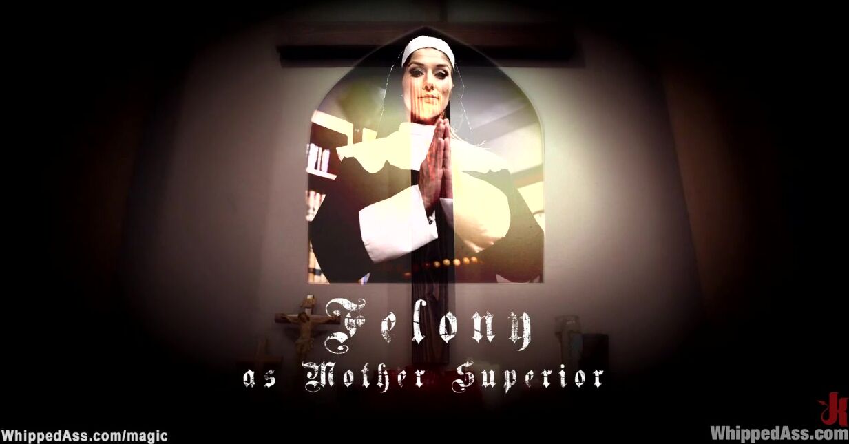 Huge boobs brunette MILF nun Felony binds two hot coeds Jodi Taylor and Sarah Shevon face to face with nipples bound to each other and whips them