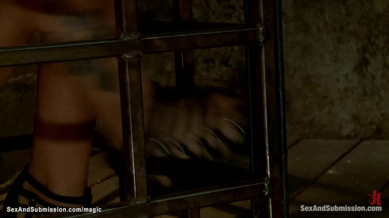Caged babe pulled out for anal