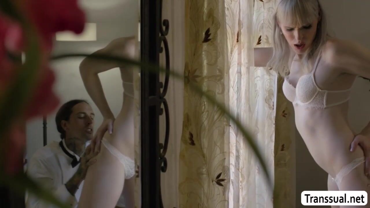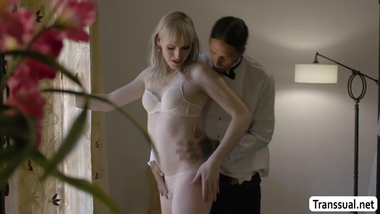 Trans bride and her soon to be husband are in the room having sex first before their marriage.After that,the slut bridesmaid watching them and she join.She lets the groom lick her pussy while the TS bride is fucking her pussy.