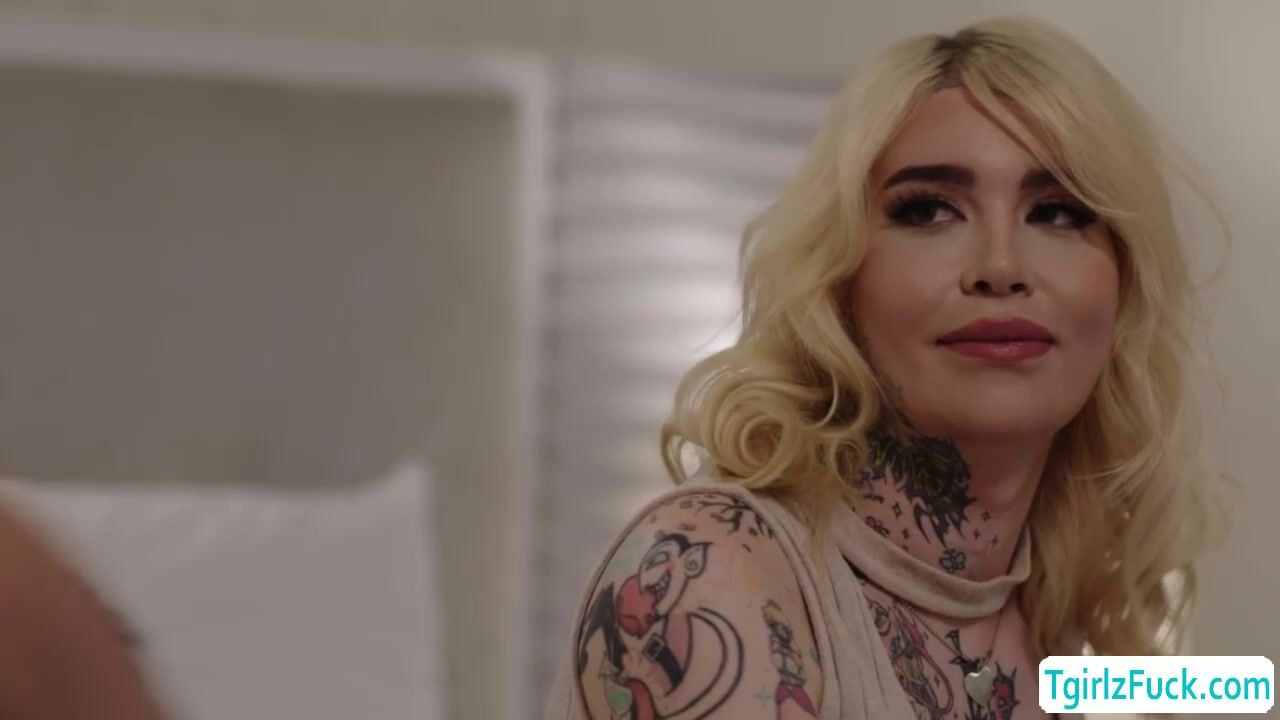 Big tits blonde shemale Gracie Jane pleases hunk Johnny B with skillful deepthroat blowjob while stroking her big tranny cock. In return, he titsuck her big tits and offers his big ass for a hardcore anal bareback doggystyle and missionary moaning in orgasm.