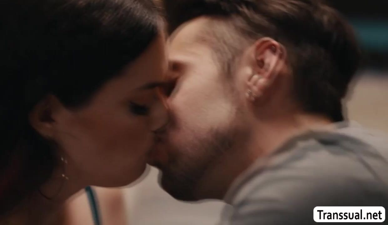 Cute shemale goes to the room of her stepbrother and talks about something.After that,they get horny and start kissing each other on the bed.Next is,she throats his hard big cock passionately and lets him bareback her wet tight ass so hard.