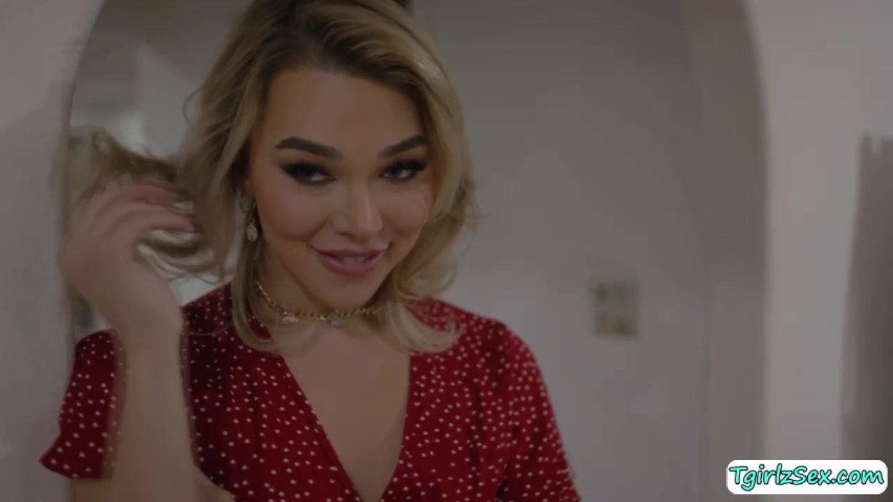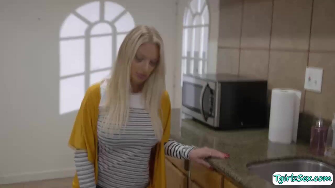 Handsome plumper Zac Bishop is approached by blonde shemale Emma Rose puslling down his spants and gives his ass a rimjob then the tall tgirl bareback analed doggystyle. They moved in bed wehre she deepthroat blowjobs his big cock and buttfucks him missionary.