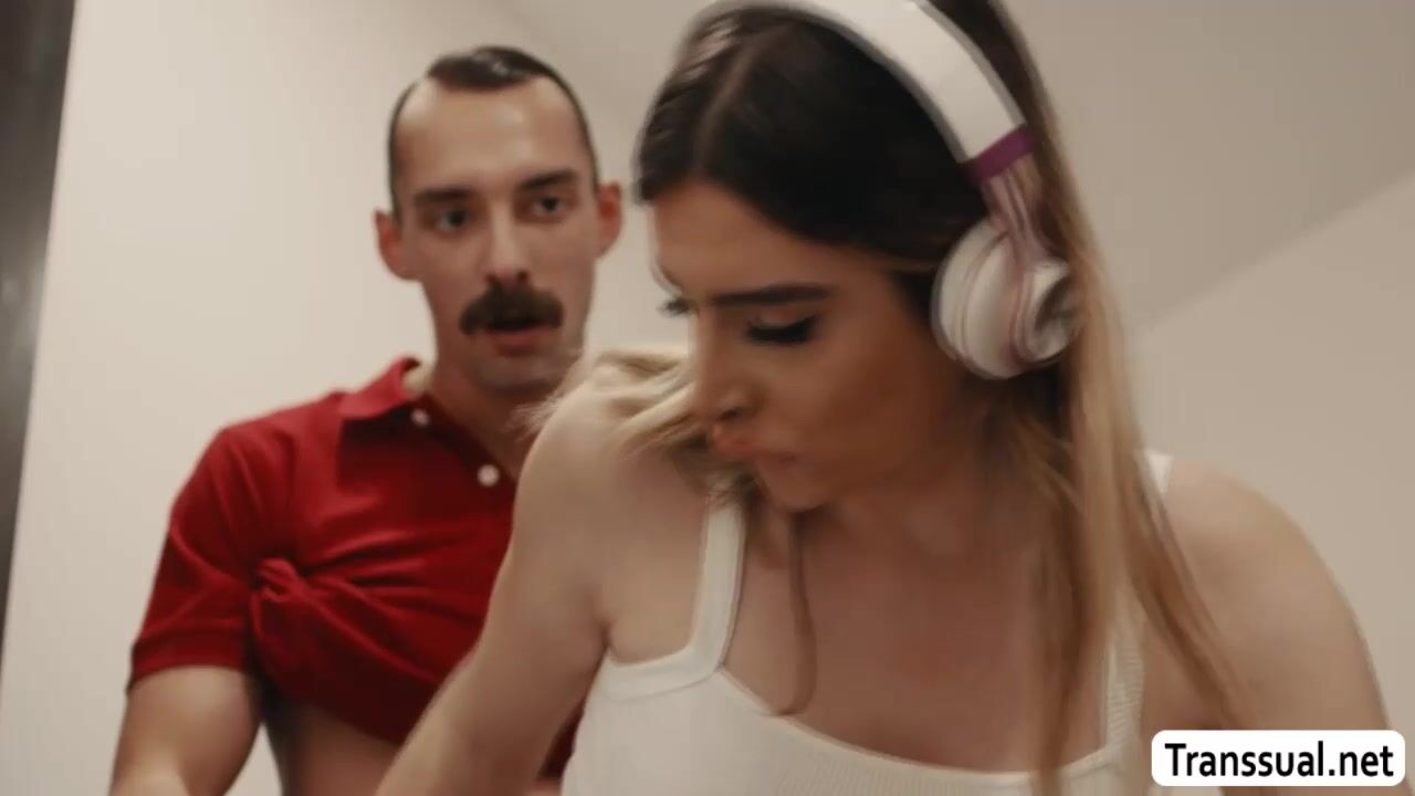 Gorgeous TS Ivory Mayhem is doing her laundry while listening to her music.After that,her stepdad enters the laundry room and he then bareback her ass so hard.Next is,they move into the bathroom and throats stepdads big cock before she rides it again