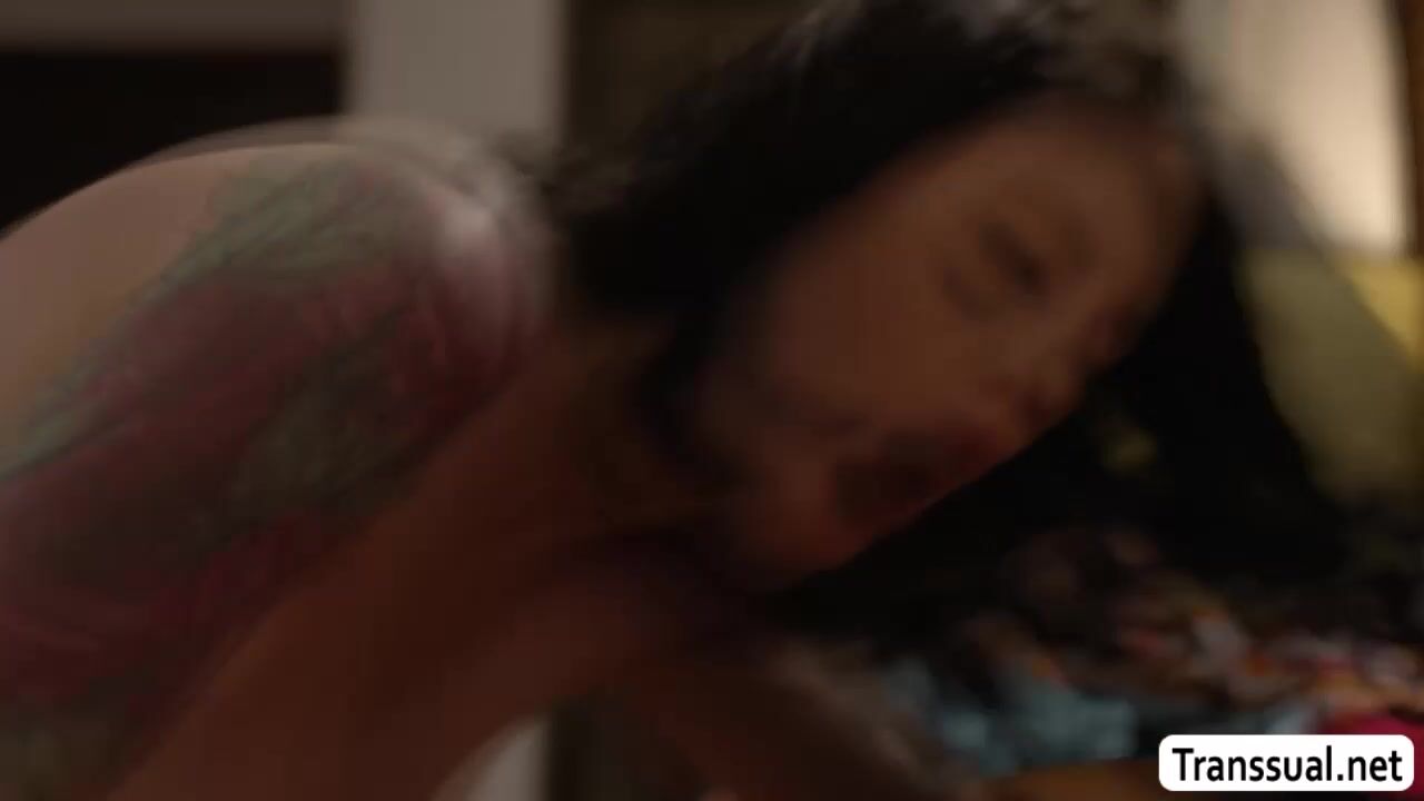 Big tits babe goes to the room of her shemale stepsister to have sex with her.They start kissing each other on the bed and she then throats the shecock of her TS stepsister.In return,her Tgirl stepsis licks and fucks her wet pussy so deep and hard.