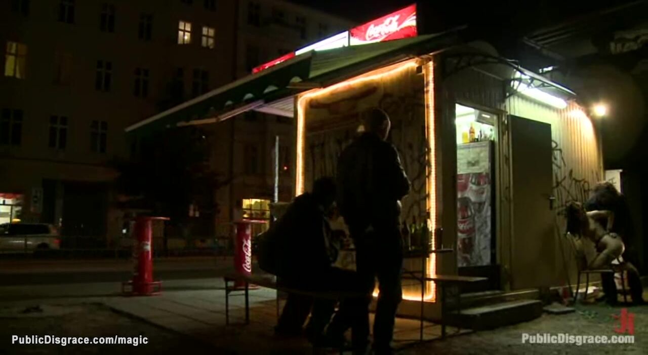 Zenza Raggi makes gagged and handcuffed naked petite Euro babe Amabella driving him in chariot in public streets then anal fucks her with huge cock all around the city