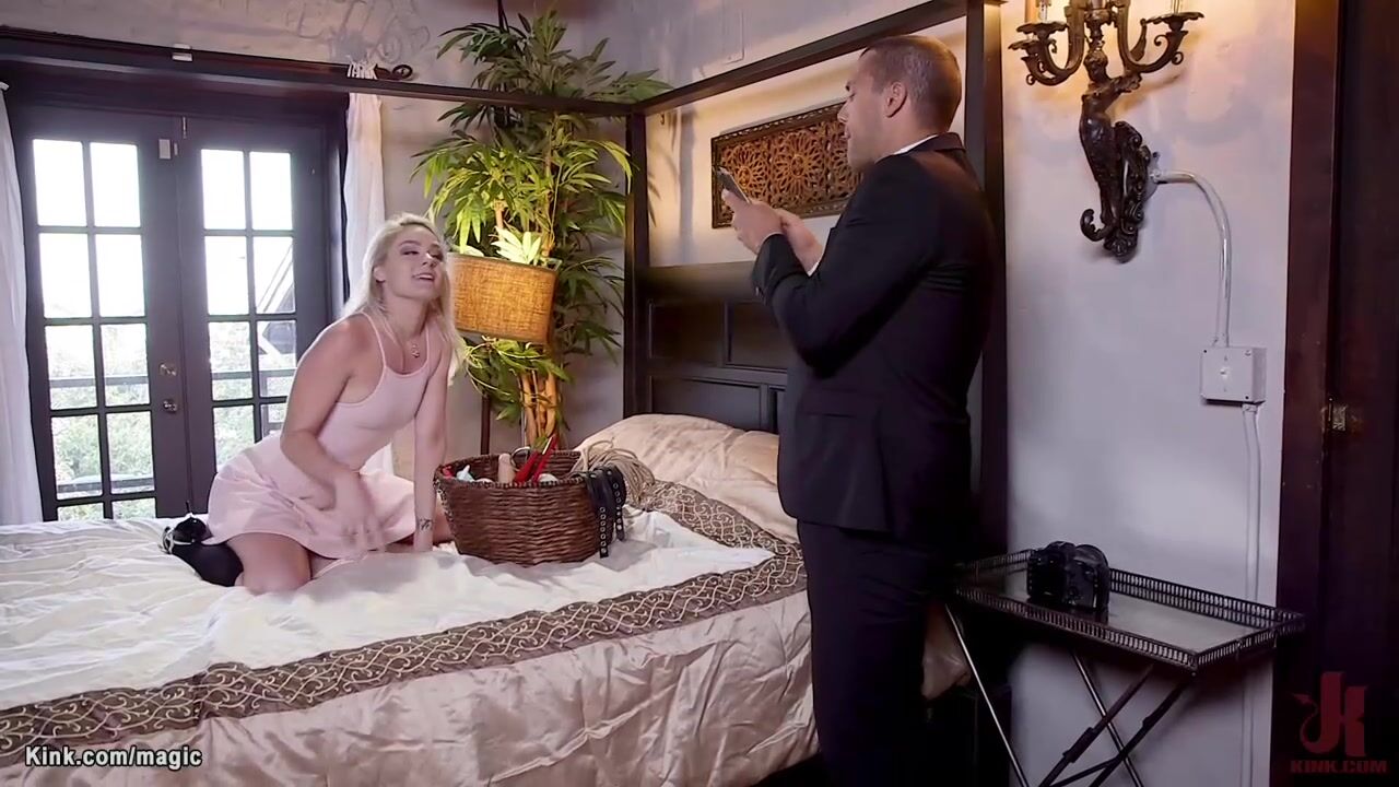 Big dick reporter Ramon Nomar straps young blonde Lisey Sweet and anal fucks with big cock then in threesome anal fucks her MILF stepmom Angel Allwood