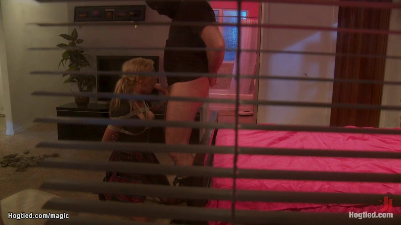 Masked big cock old intruder Mark Davis breaks in house of big tits blonde student Kaylee Hilton and fucks her in deep throat and pussy in bondage