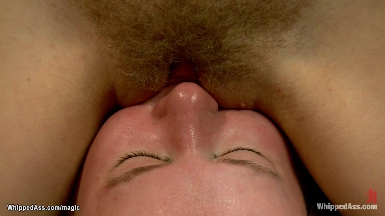 Resident ginger lezdom Maitresse Madeline Marlowe whips redhead lesbian slave Claire Robbins who is mounted on sybian then binds her on knees and spanks