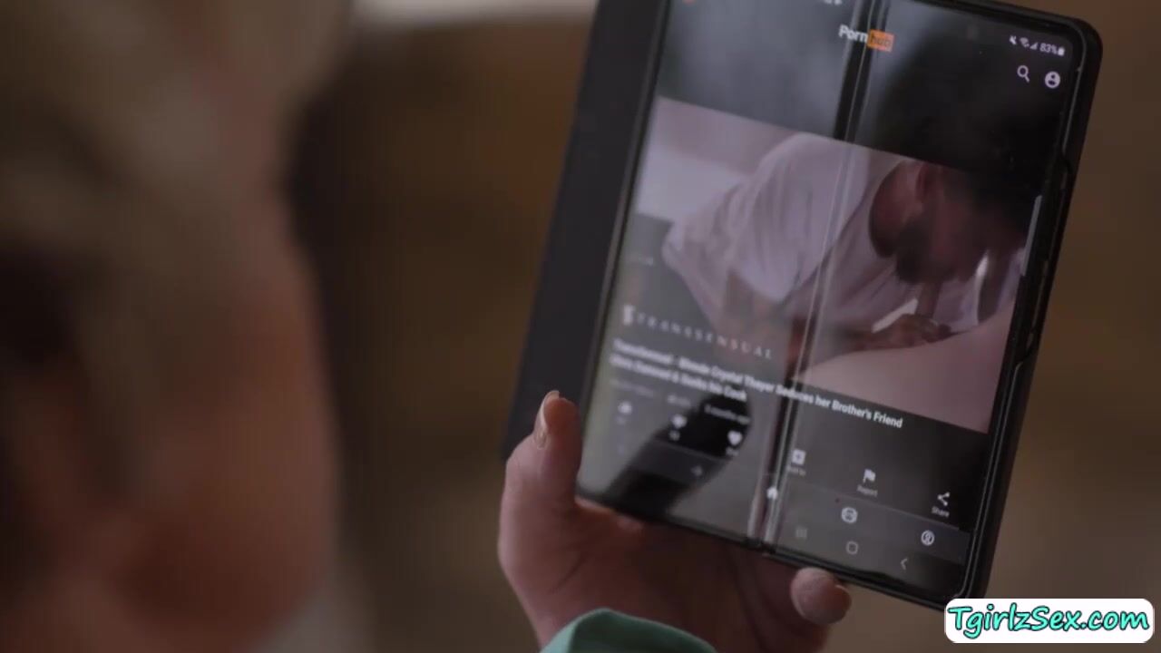 Busty blonde milf Dee Williams masturbates in the couch then skinny small tits ts Tori Easton joins her with big tranny cock out to deepthroat blowjob. The tall tbabe bends her over for hardcore pussy pounding doggystyle in the kitchen as her big boobs bounces.
