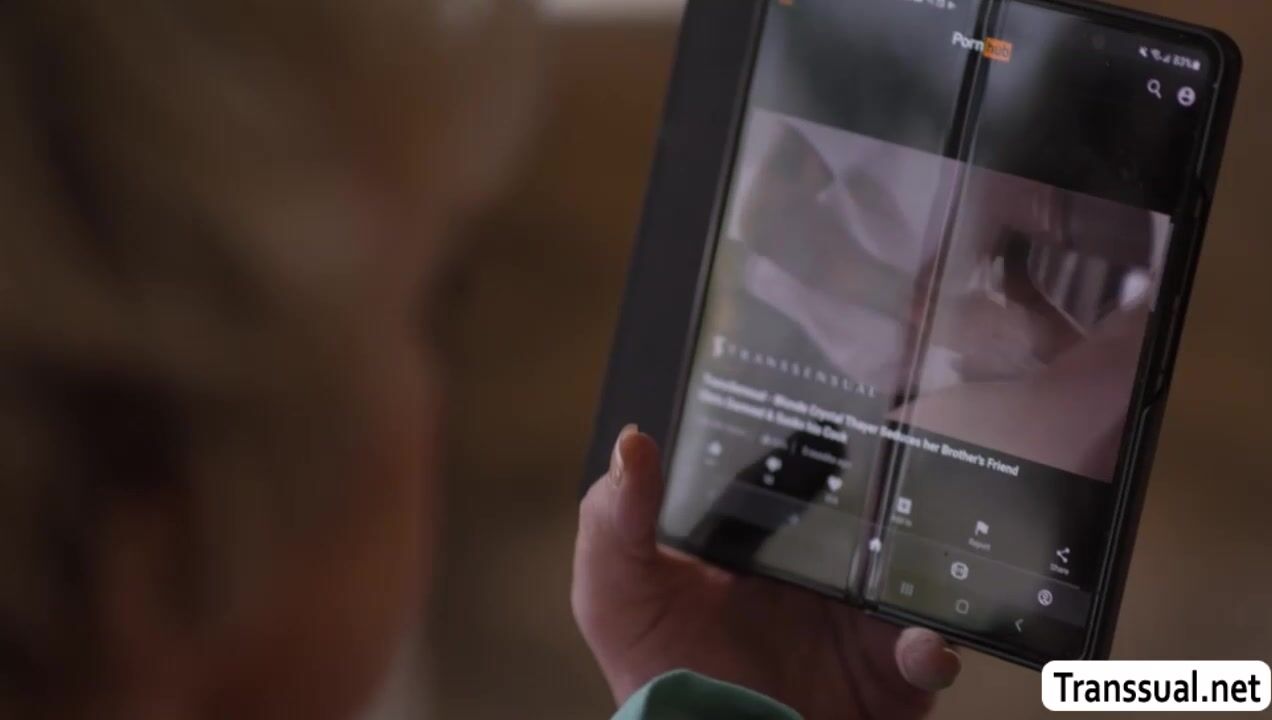 Lustful milf is on the couch masturbating and she saw her shemale neighbor fucking her pie.Instead of getting mad,she throats her TS neighbors shecock passionately and in return,she gets her wet pussy pie fucked by her trans neighbor.