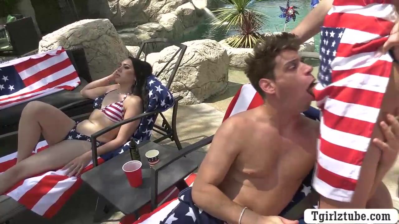 Busty shemale babes Izzy Wilde, Jade Venus, Kasey Kei and Brittney Kade enjoy deepthroat blowjobs the studs big hard cock in the pool.The tattooed dudes titsuck and suck their ts cocks too.Then the orgy bareback anal session starts.