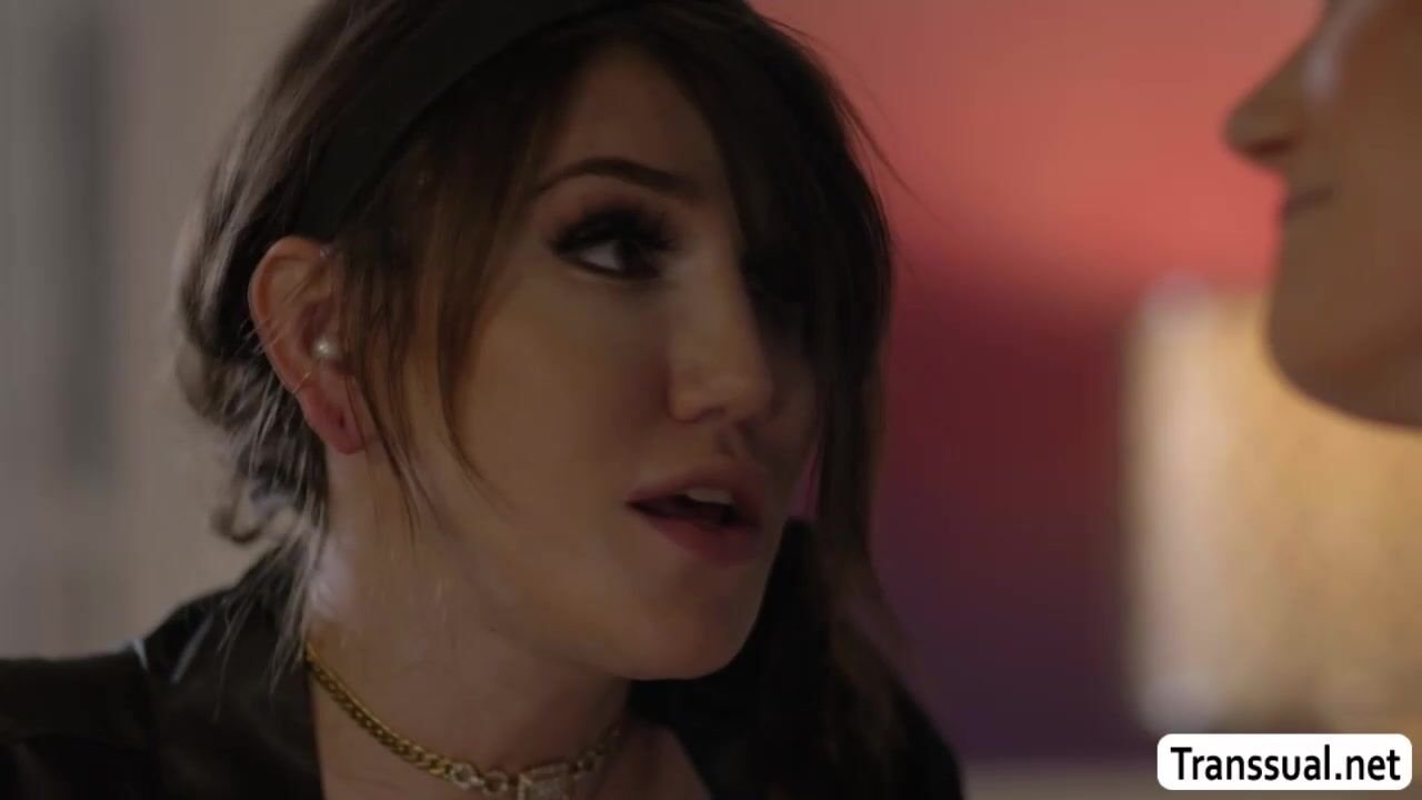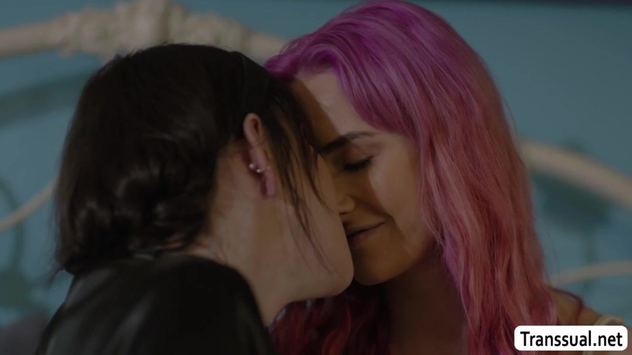 Tranny brunette and her pink haired friend are on the bed kissing each other passionately.After that,she lets her friend throat her hard shecock and in return,she fucks her friends tight wet pussy so deep and fucking hard.