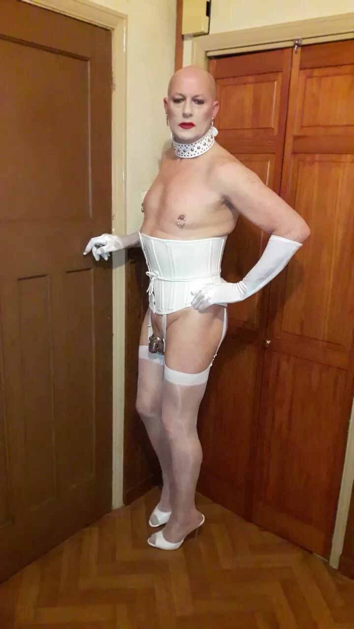 ME DRESSED IN WHITE LINGERIE, STOCKINGS AND HEELS EXPOSING MYSELF AS A SISSY FAGGOT