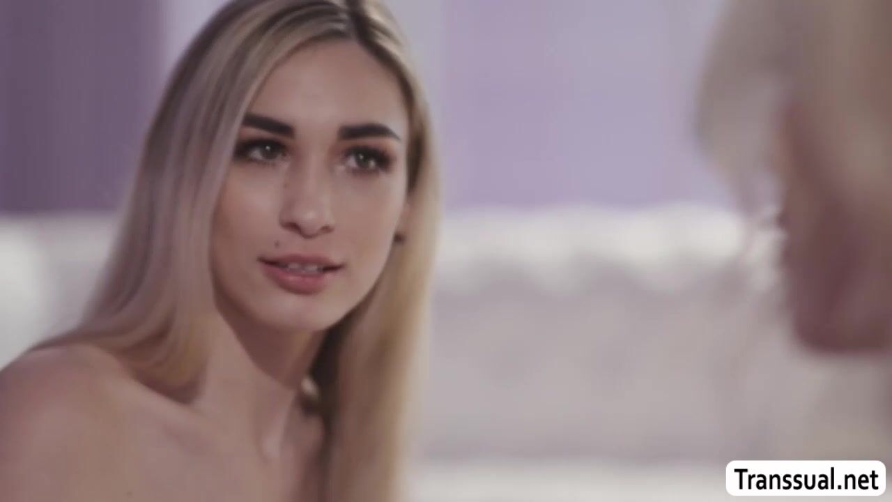Blonde shemale and her dance mate are on the floor getting ready.After that,they both get horny and start kissing each other passionately.Next is,she lets her dance mate suck her shecock and she then licks her pussy and fucks it in return.