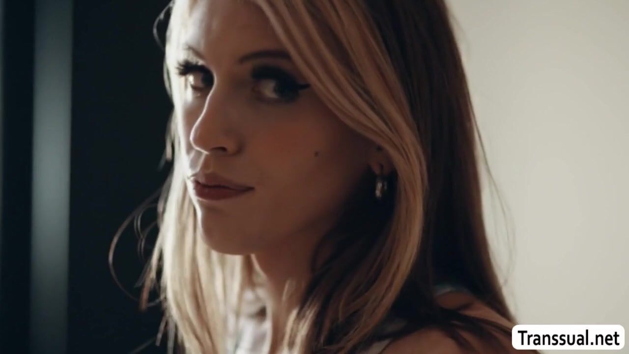 MILF TS stepmommy comforts her mad trans stepdaughter.They go into her room and they start kissing each other on the bed.Next is,she throat her TS stepdaughters shecock and licks her ass before she barebacks it so deep and hard.