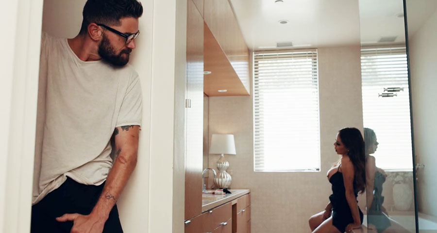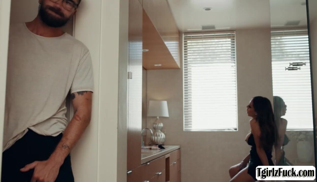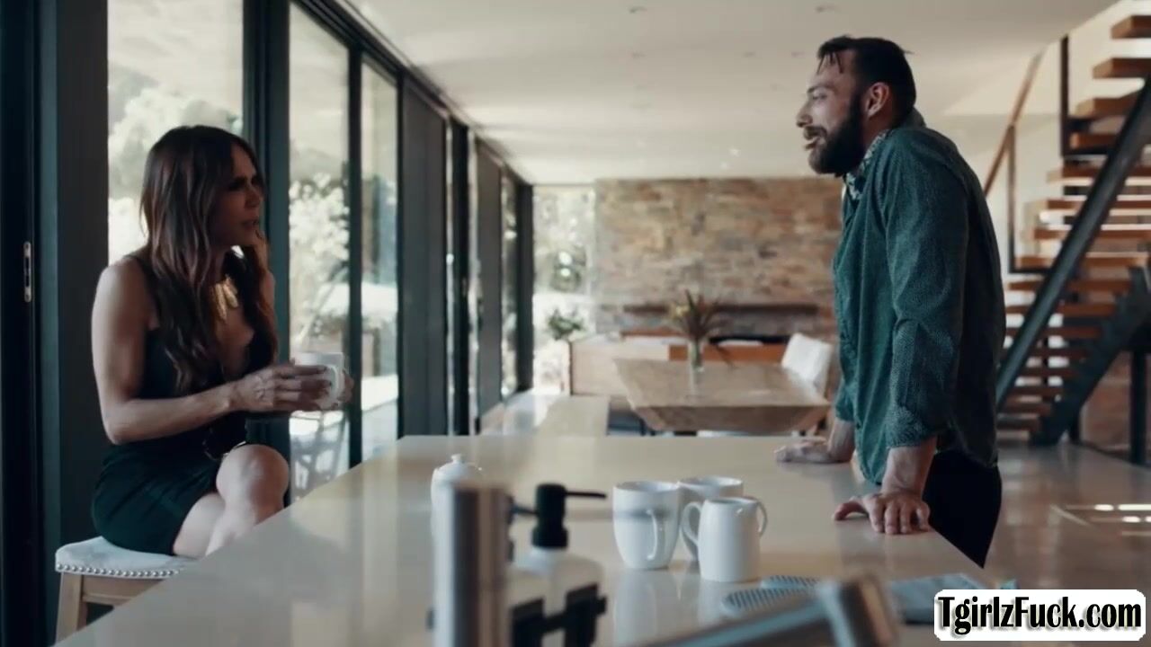 In the hallway, big tits brunette ts Sofia Sanders flirts with hunk Chris Damned caressing his big cock while kissing slowly kneeling down to deepthroat blowjob. Soon, the busty ts stepmom stretches her big as from behind for a hardcore doggystyle anal bareback.