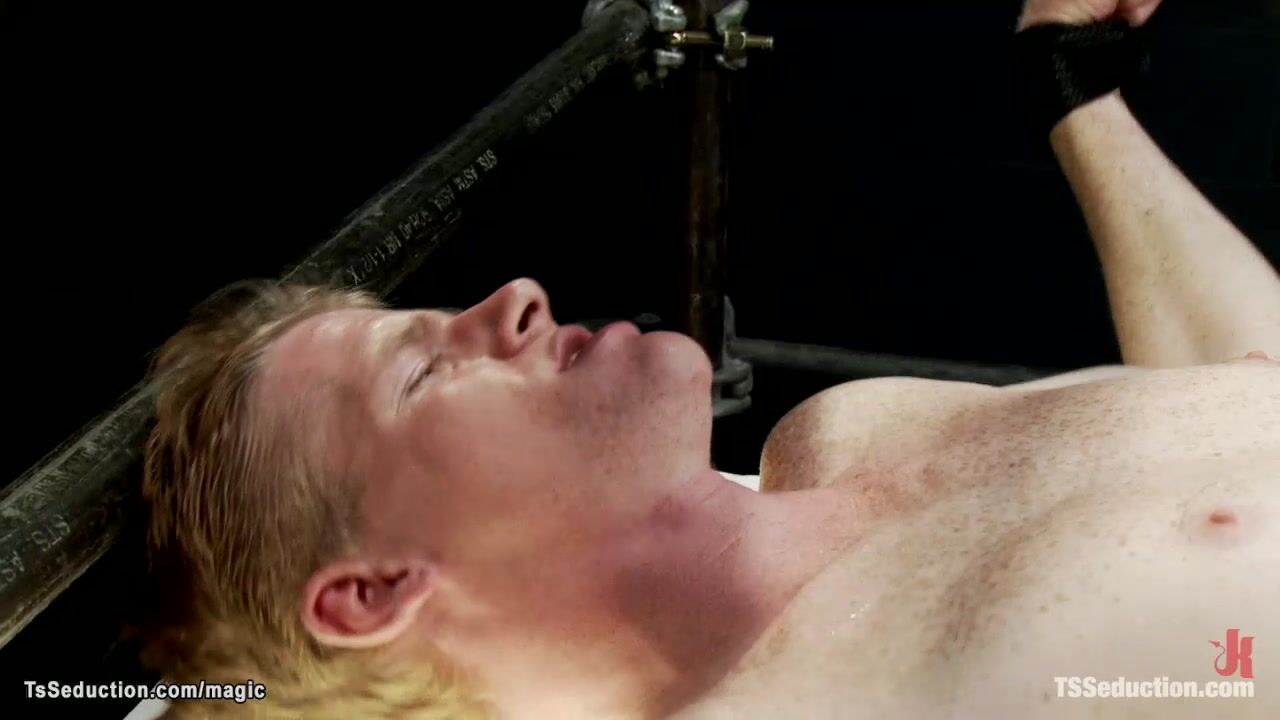 Huge cock and big tits tanned shemale dom Morgan Bailey picks up man Vennue Longhorn in dark alley and then binds him and fucks with big dick in the ass
