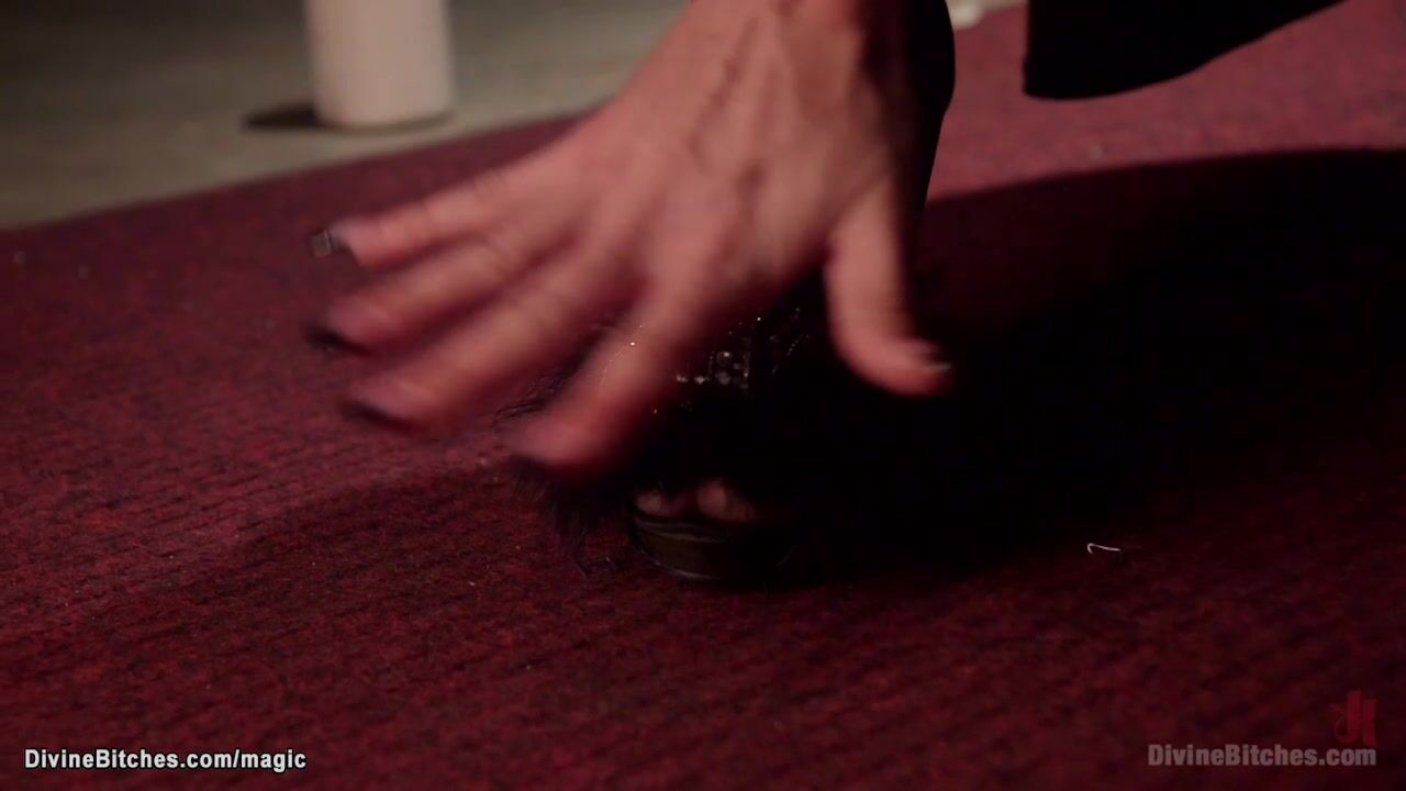 Big tits blonde femdom Holly Hearts tazappers ass to bound bent over blond slave Rob Yaeger then wanks him and makes cum then pegs with strap on cock