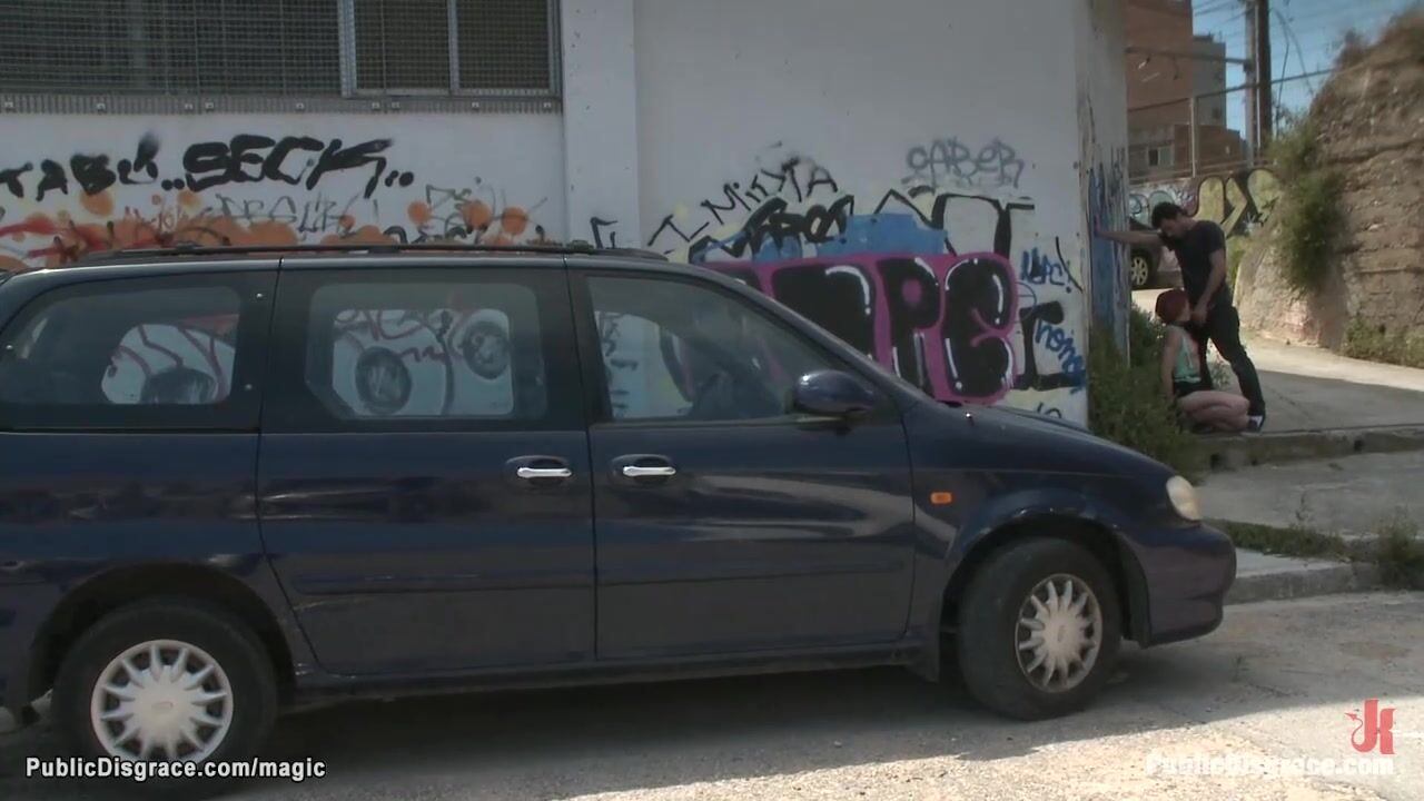 Redhead Euro babe Yakima Squaw is bound and walked in public streets in the middle of the day then throat fucked by big cock James Deen and stranger