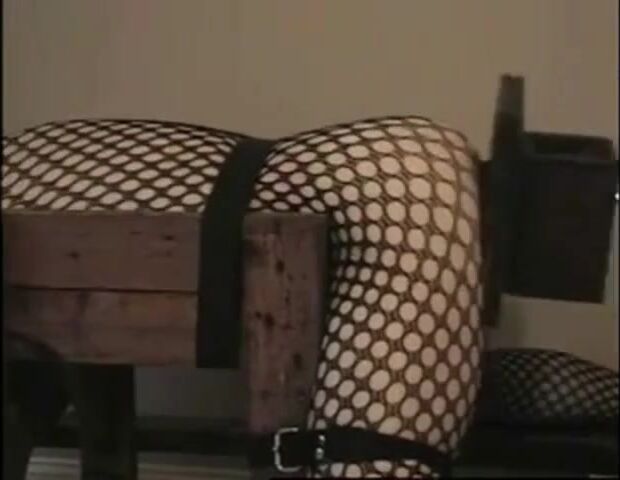Strapped down and taking a pounding from a huge black dildo hard and fast