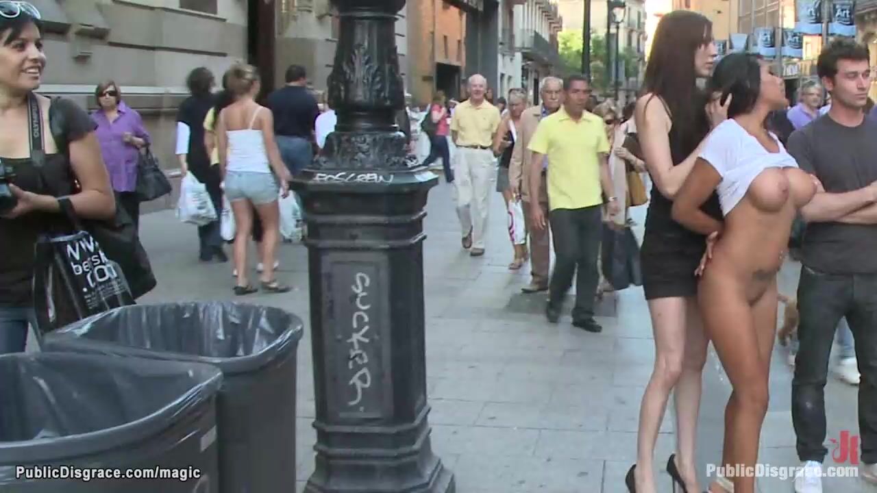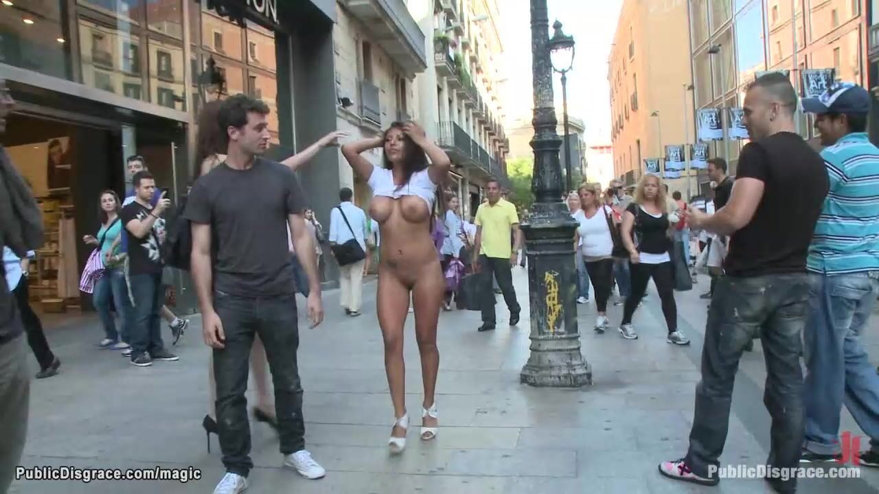 Super hot Euro babe Yoha Galvez with huge boobs naked walked through public crowded streets by dom Princess Donna Dolore then fucked by James Deen and his big cock